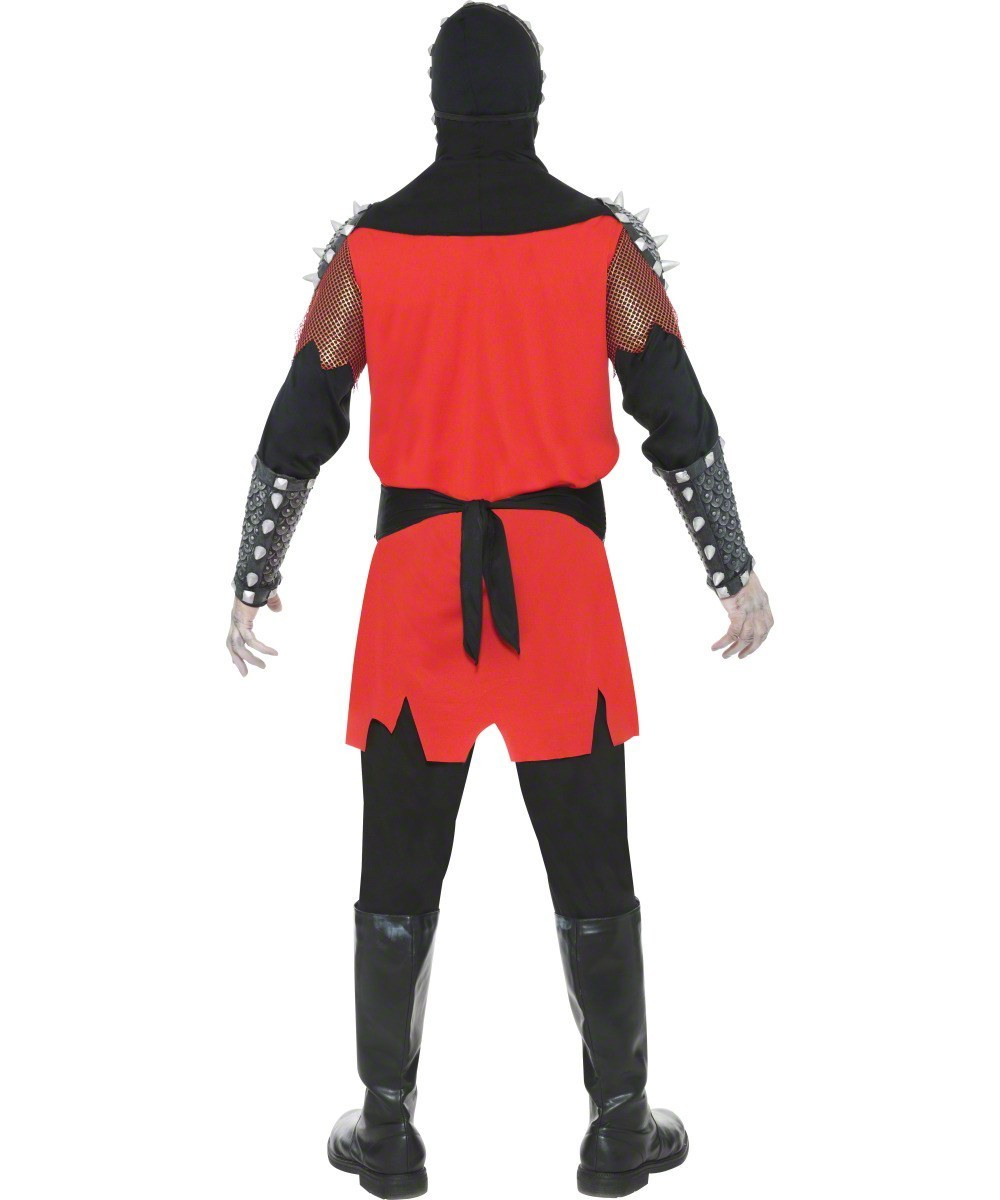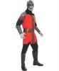 The Executioner Costume consists of a red tunic with brown cross design across the front with hood and a latex mask with a horrifying grin. To complete this creepy look a pair of shoulder cuffs and arms cuffs are also included with the costume.