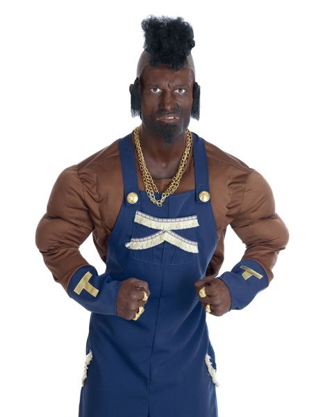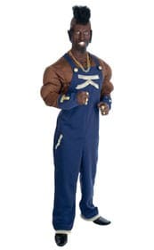 Classic 80's themed crime fighting Mercenary Costume. This popular Halloween outfit consists of a pair of blue dungarees and a padded top.
