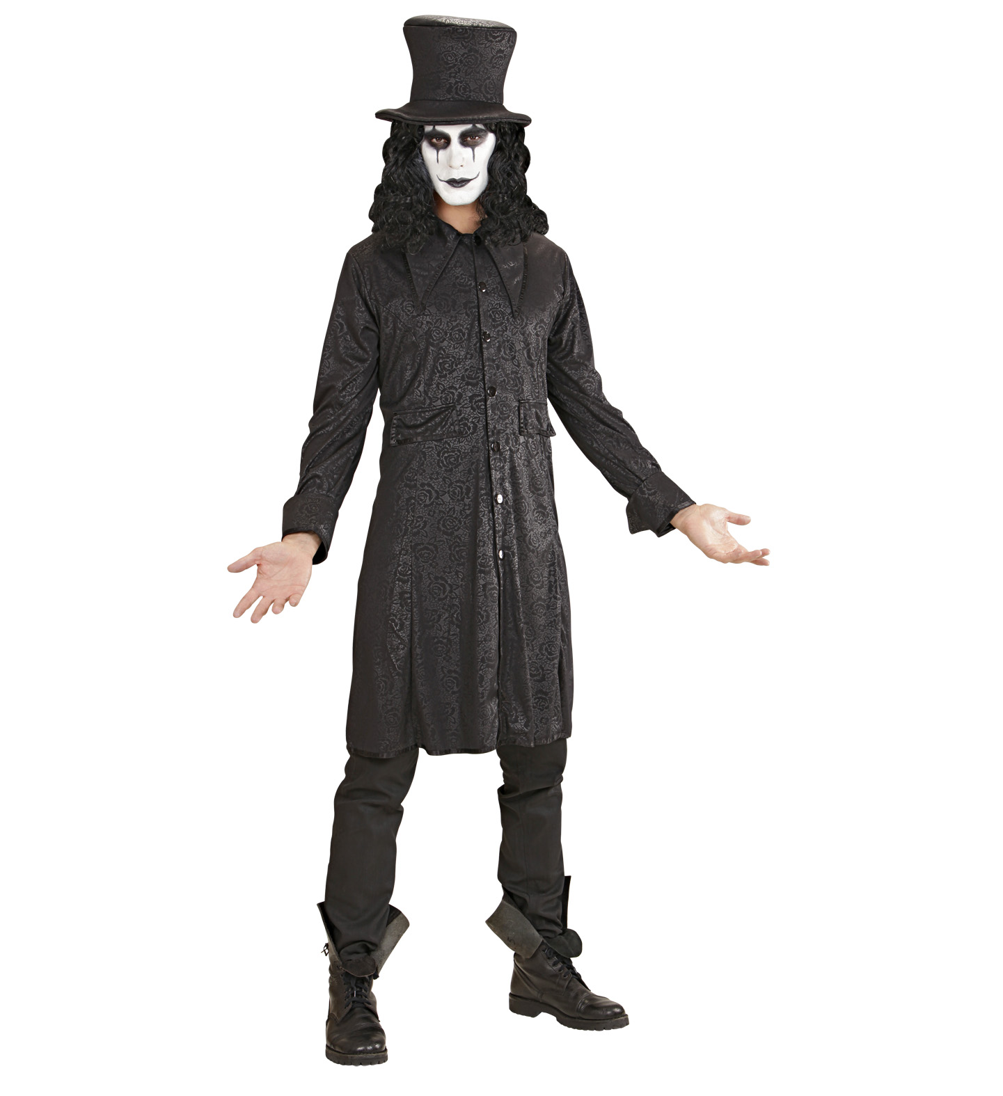 The Raven Adults Costume includes a deluxe black jacket with a matching top hat.