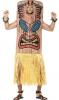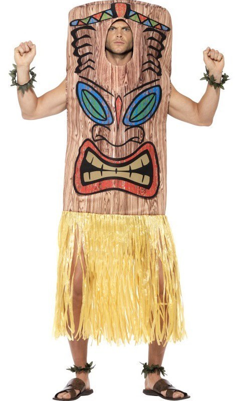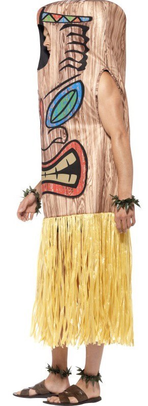 Tiki Totem Costume includes a printed tabard with face opening and an attached skirt. To complete the look a pair of wrist and ankle cuffs are also included.