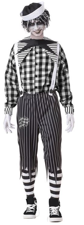 This Tragedy Andy costume really brings this character to life consisting of a black and white checked shirt with attached stripped collar, black and white pin stripped pants with white suspenders.