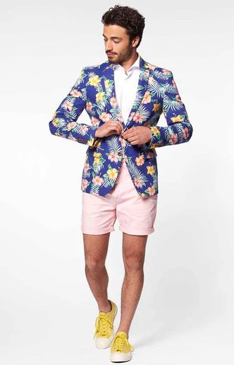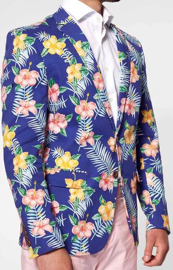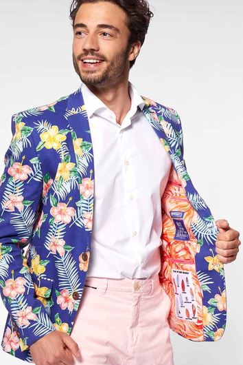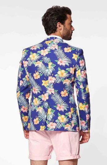 Delight you and everyone around you wearing our Blue Tropical Flower OppoSuits Deluxe Blazer. Bold in color and unique shapes are a sure way to get a conversation started.