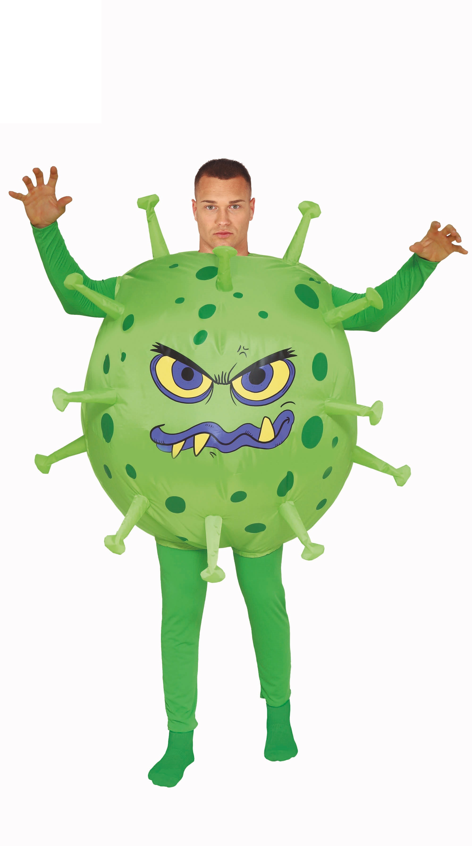 Adult inflatable Virus costume. Included are inflatable costume and fan