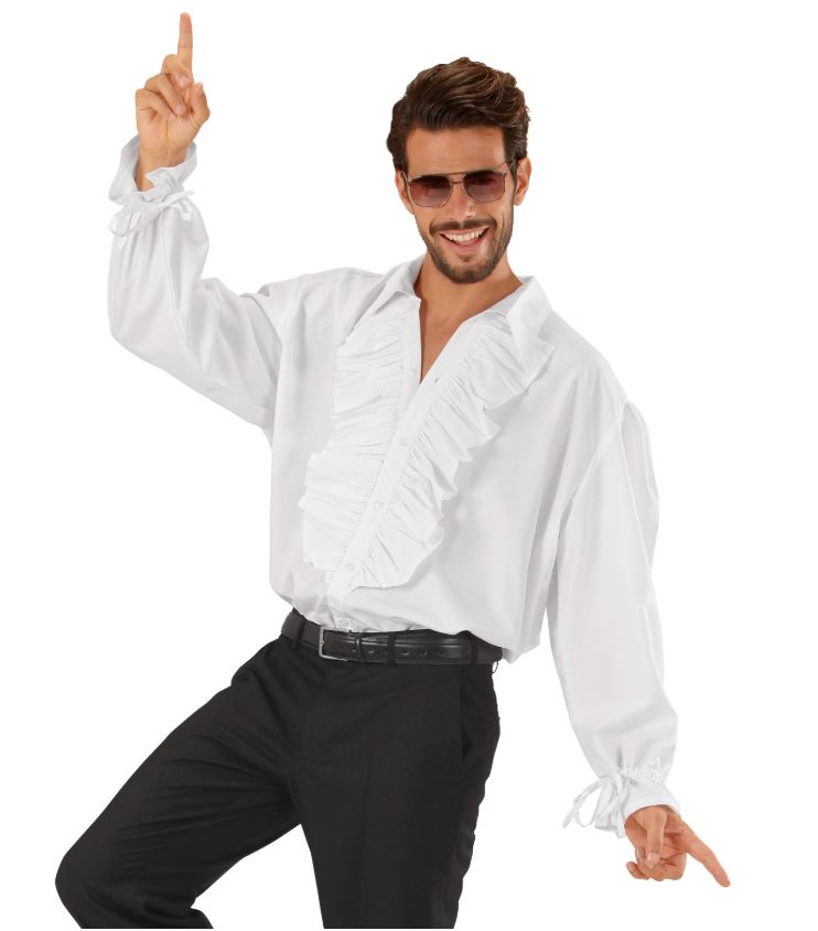 This fun ruffled style shirt is perfect for any Themed party. This features a white shirt with ruffles along the front To complete the look, an afro and glasses which can be purchased separately.
