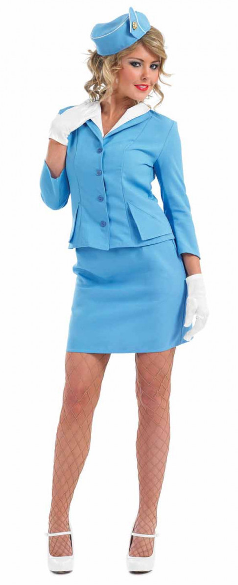 To complete the classic Cabin Crew look a stylish pair of white gloves and a blue hat is included.