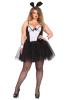 Curvy Bunny Costume is a Body hugging shaper dress with molded underwire cups and glitter tulle skirt, cuffs, pin on tail, and bendable ear headband.