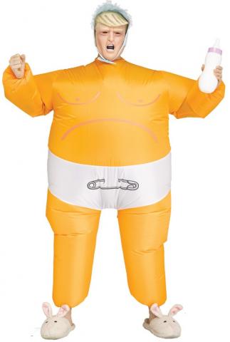 Recreate the famous Donald Trump Baby Balloon look with our hilarious Baby Prez Adult Costume. This giant inflatable costume includes a one piece inflatable jumpsuit with a battery operated fan. Our Baby Prez costume wouldn't be complete without a bonnet and a Donald Trump face mask.