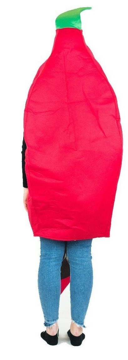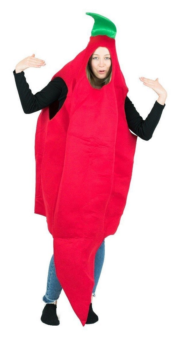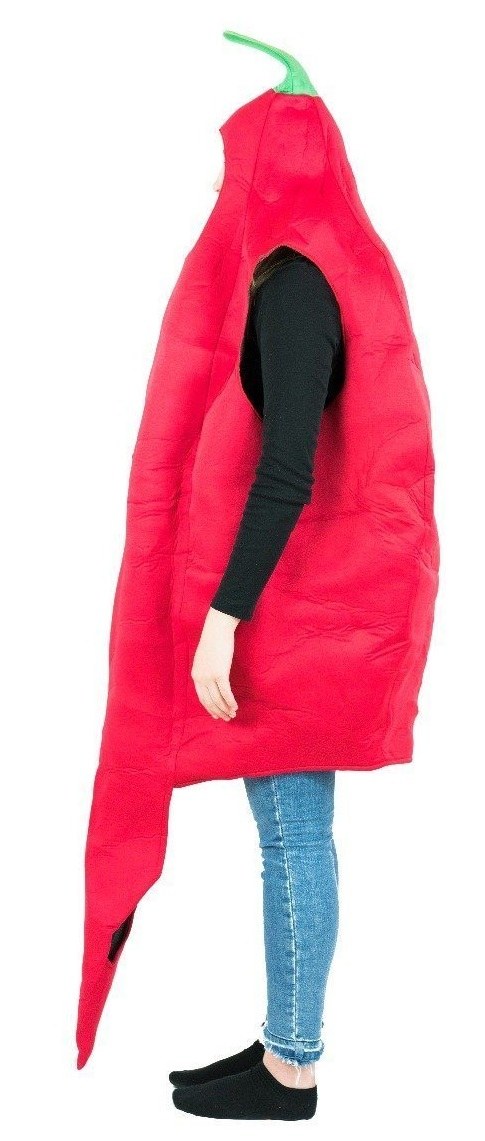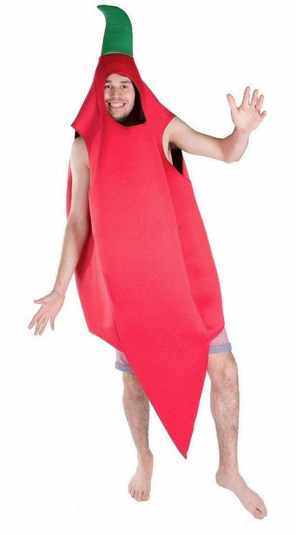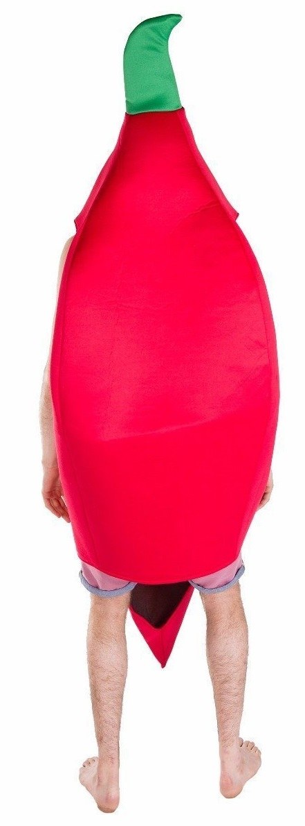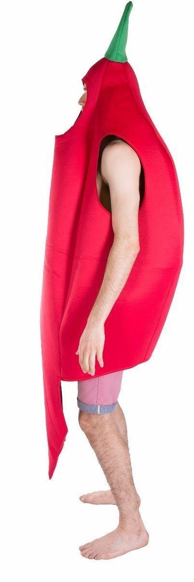 Chilli Pepper Costume includes a one piece foam costume with openings for your face, arms and legs.