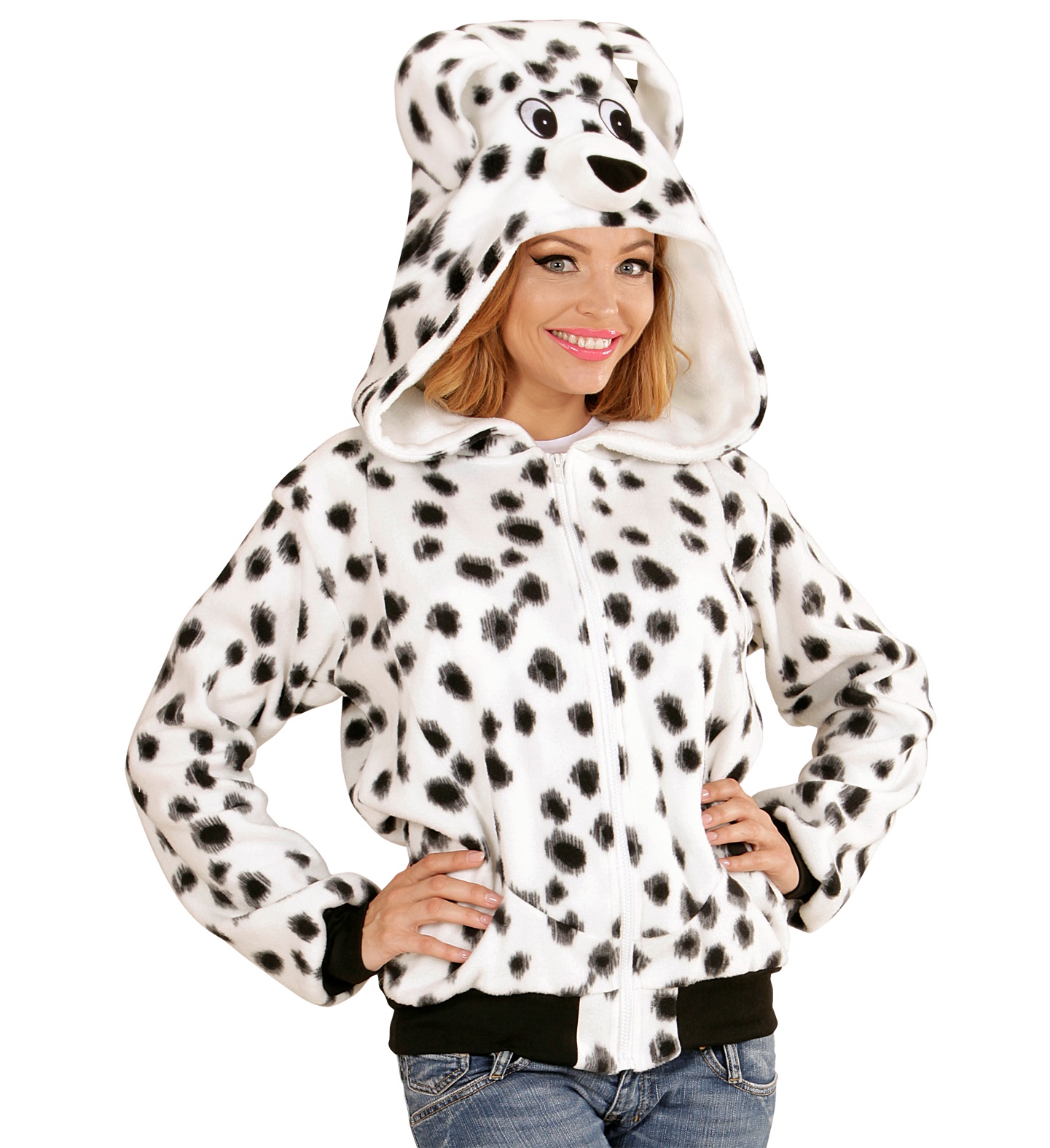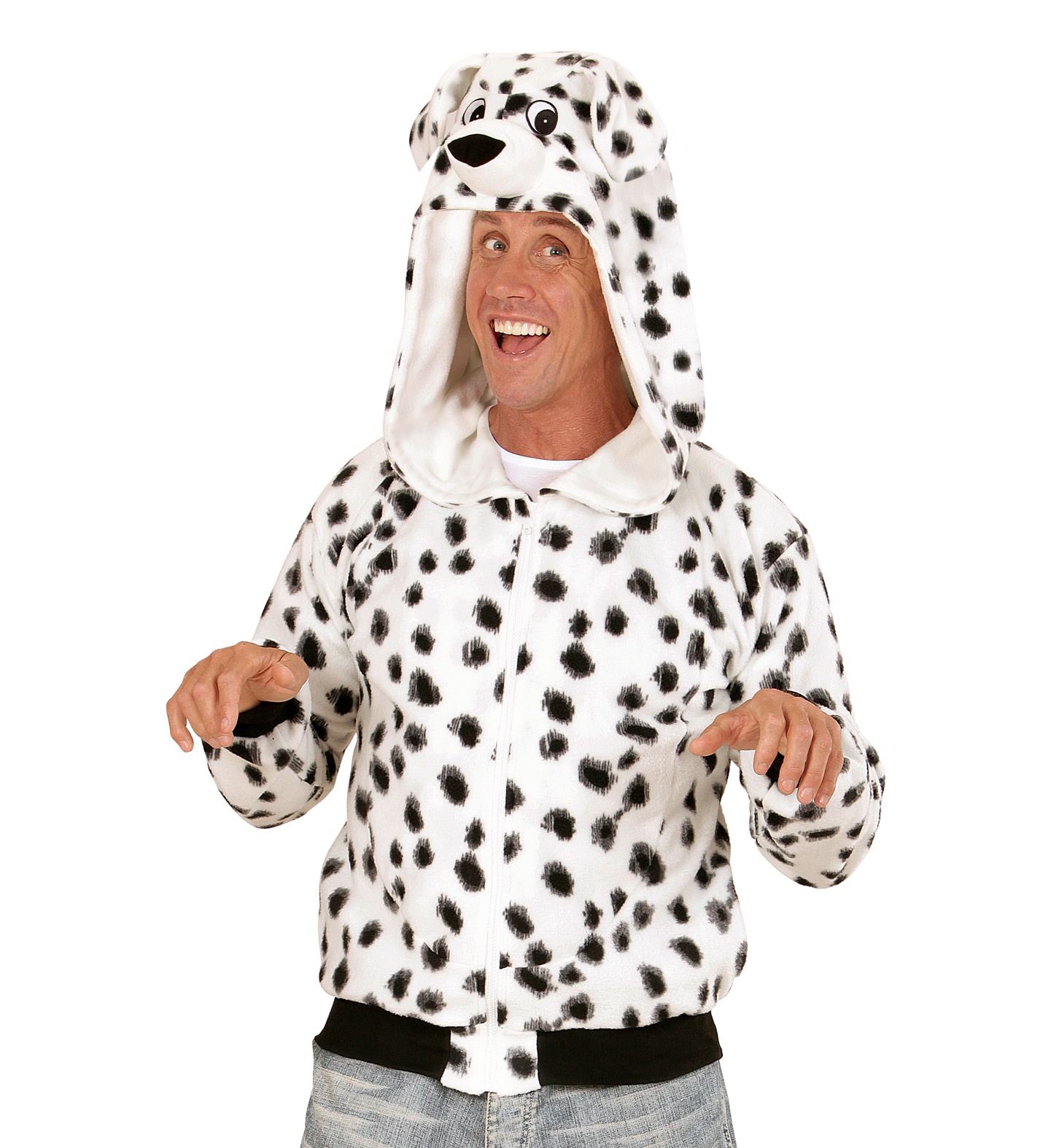 This Adults Dalmatian Hooded Fleece is erfect for trick or treating this year!