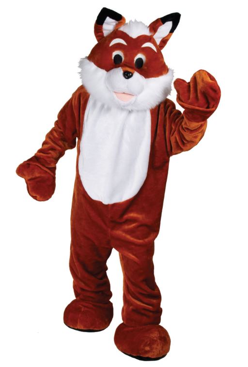 Adult Fox Mascot Costume includes a giant mascot head, body suit, attached gloves with hand openings and giant over shoes.