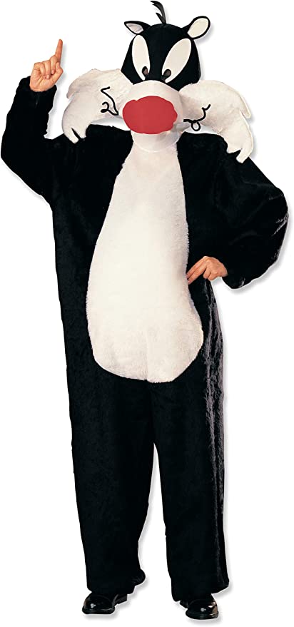 Our deluxe Sylvester costume as seen on the popular Looney Tunes cartoon consists of a black one piece jumpsuit with faux fur front and velcro fastening at the back. A separate headpiece is included to complete the look