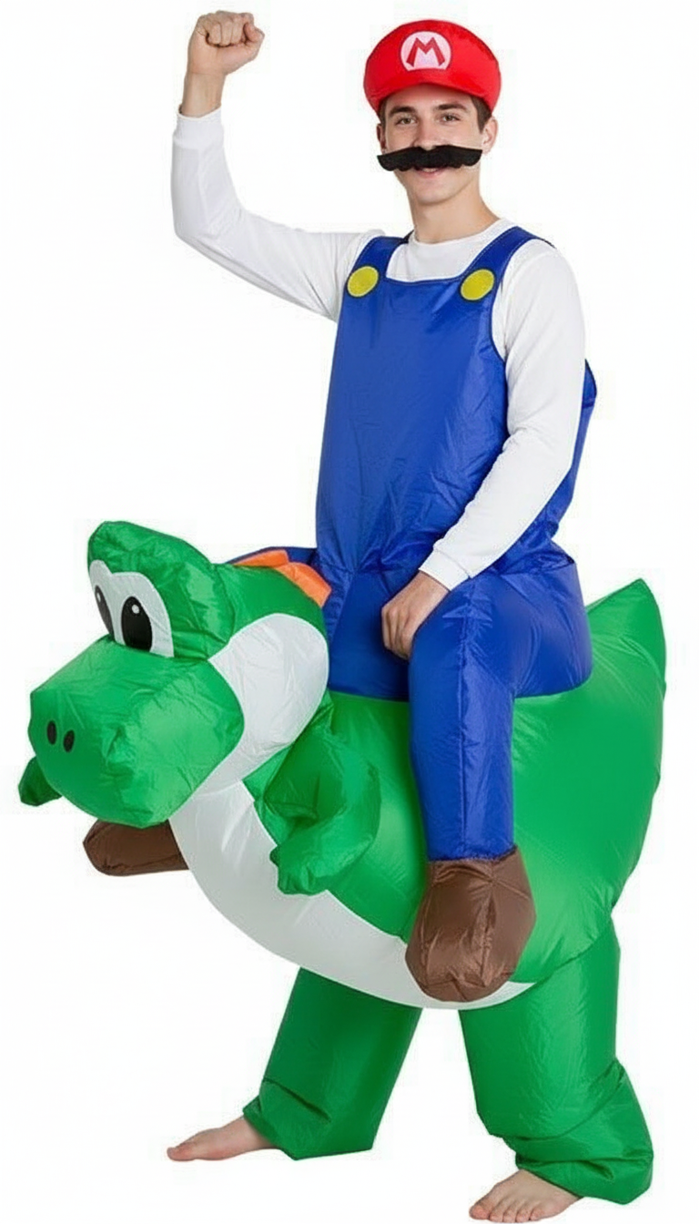 This Inflatable Carry Me Green Dinosaur Costume is perfect for a fun and exciting party. It is easy to put on and take off, and it is made to be comfortable and stylish. With a green and blue colorway, this costume is a great addition to any party.
