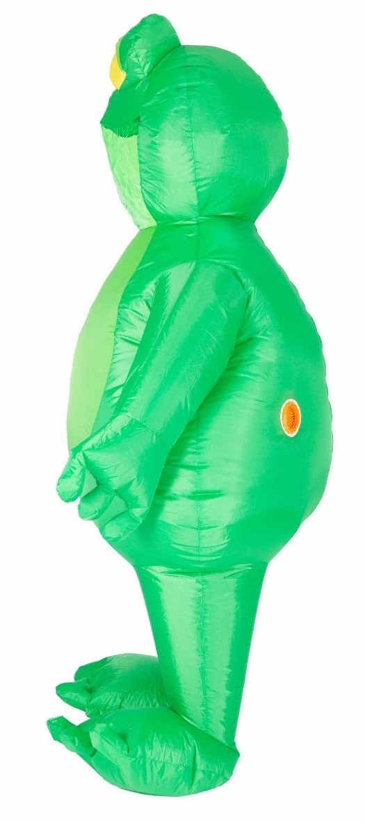 Adult Inflatable Frog costume includes a one piece inflatable Frog suit and a fan to inflate the costume. Requires 4 x AA Batteries (not included)