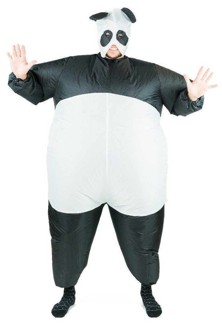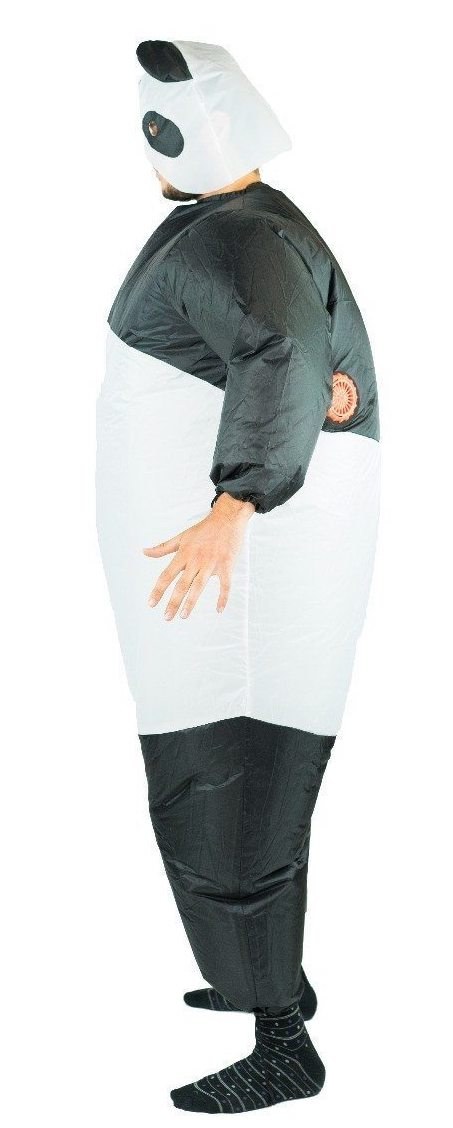 Adult Inflatable Panda costume includes a one piece inflatable Panda suit with a drawstring waist and a fan to inflate the costume. Requires 4 x AA Batteries (not included)