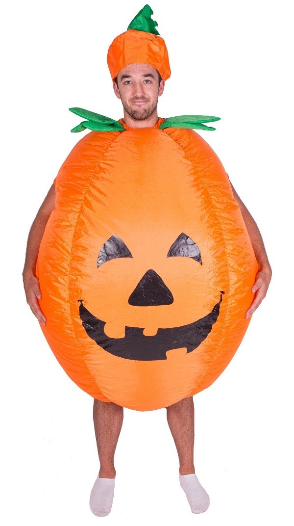 Adult Inflatable Pumpkin costume includes a one piece inflatable Pumpkin suit with fan to inflate the costume Requires 4 x AA Batteries (not included).