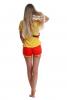 Included in this ensemble is a yellow t-shirt, red shorts and a red bum bag.