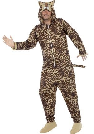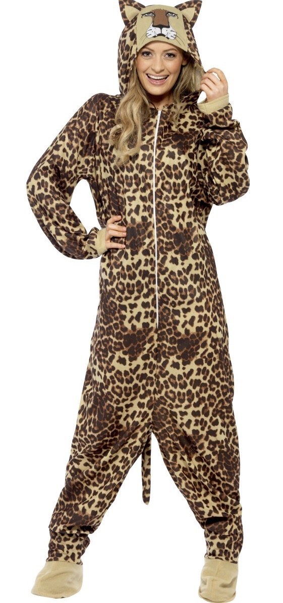 Leopard Costume includes an all in one leopard printed jumpsuit with attached hood.