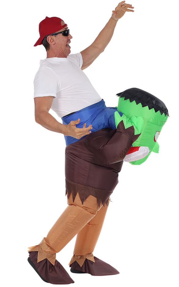 The Monster Rider Inflatable Costume featuring Frankenstein is a playful and unique costume that gives the illusion that you're riding on the shoulders of the iconic Frankenstein's monster.