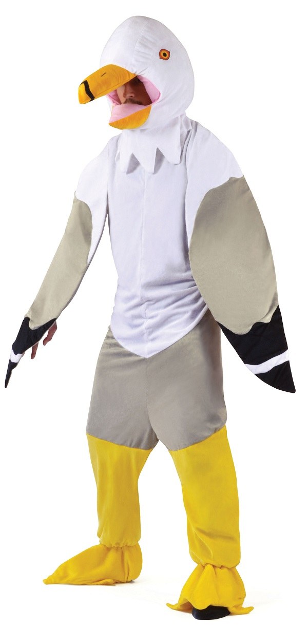 Seagull Costume includes a one piece Seagull suit with attached boot covers. To complete the look a Seagull head is also included.