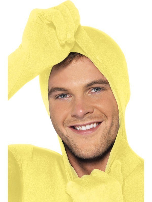 Crash Dummy Skin Costume is like a second skin with zip closure from the waist up, they are fully breathable. You also have a concealed fly and an under-the-chin opening so you can easily reveal your identity.