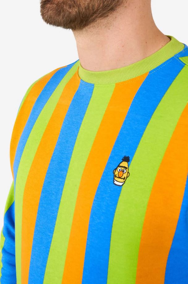 Featuring a modern tailored fit, printed design, brushed fleece inside, and comfy cotton/elastane rib cuffs—it’s perfect for pairing with your Ernie or just judging pigeons in style.