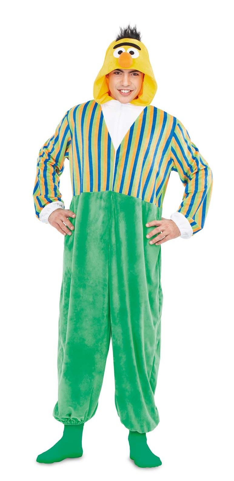 This Adults Bert Onsie includes an all in one jumpsuit. To complete the look a hood a hood is also included.