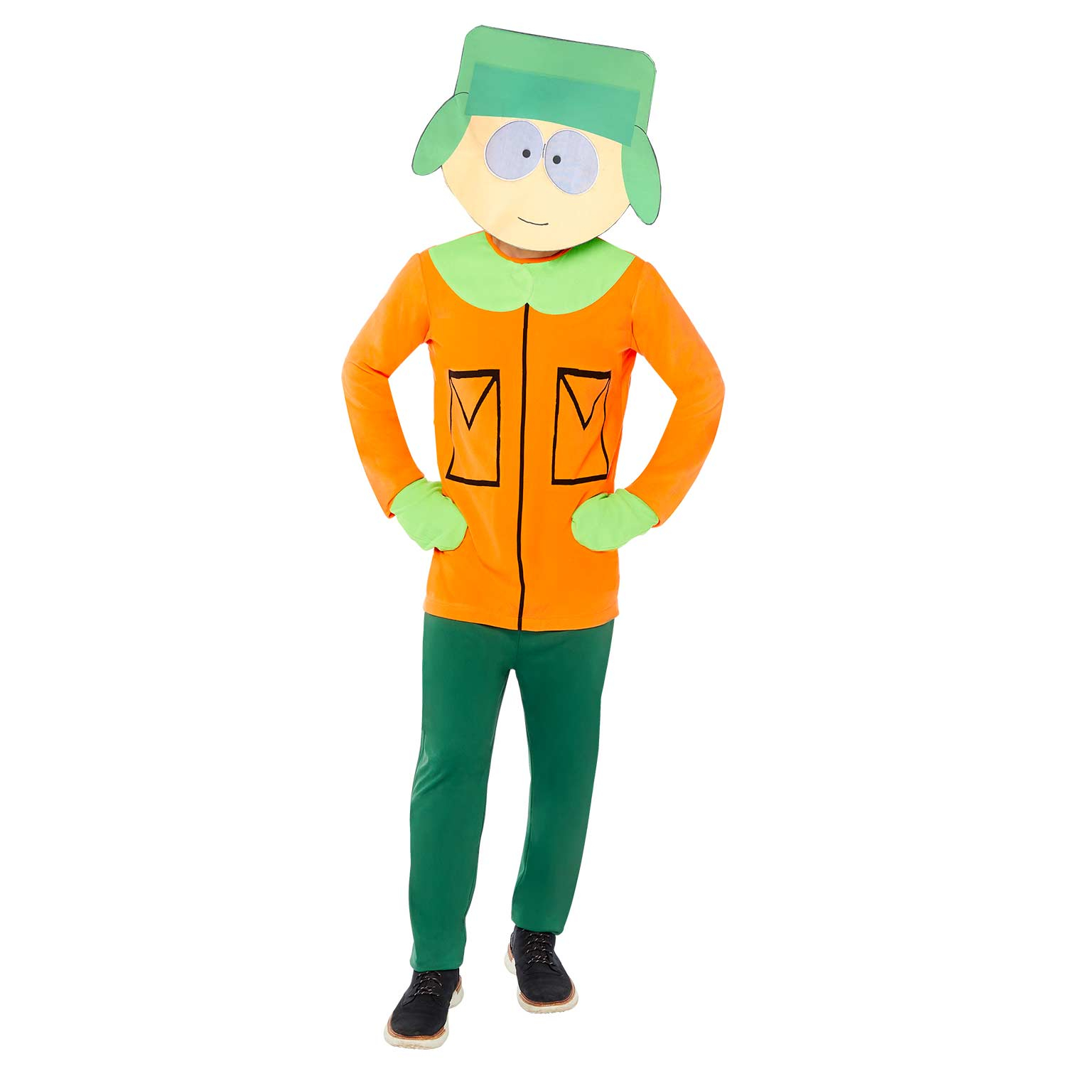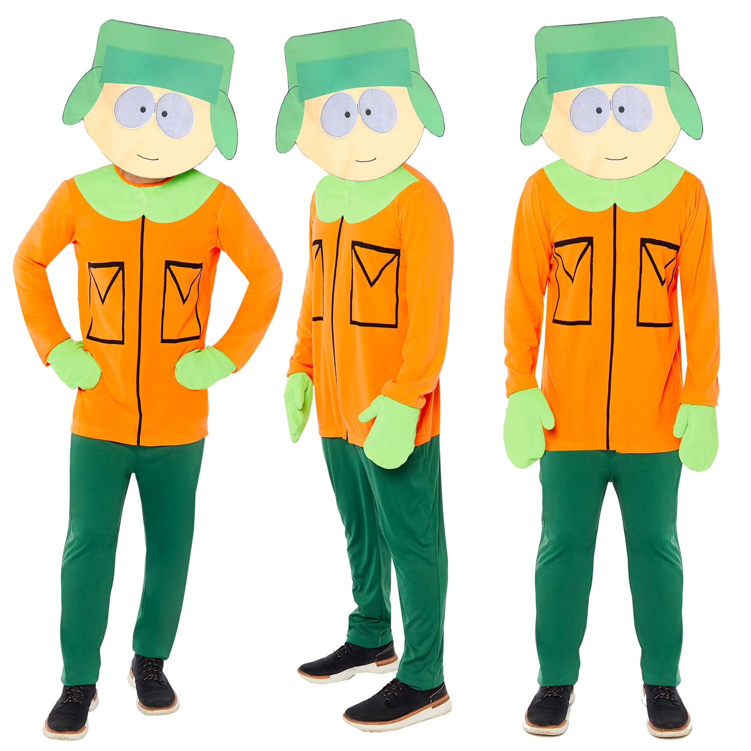 From the very funny and bold South Park TV program this is an official licensed Kyle costume. This costume consists of a bright orange fleece jumpsuit, a pair of green gloves to cover the hands and of course a Kyle mask.