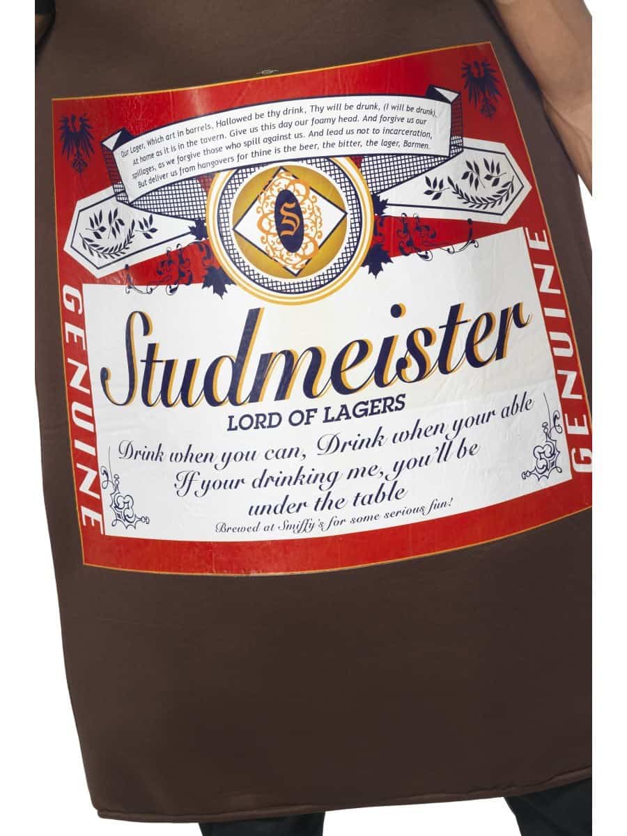 This really fun studmeister beer bottle costume is a soft foam costumes with attached bottle top hood, openings at the sides and bottom for arms and legs.