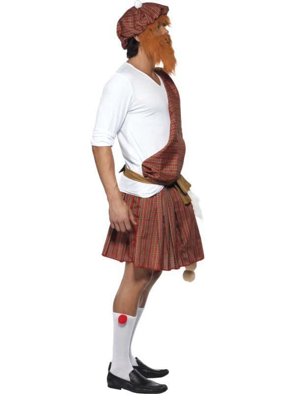 Well Hung Highlander Costume comes with a kilt which has an elasticated waist also a matching sash and white v neck top. To complete this fun look socks and endowment are included.