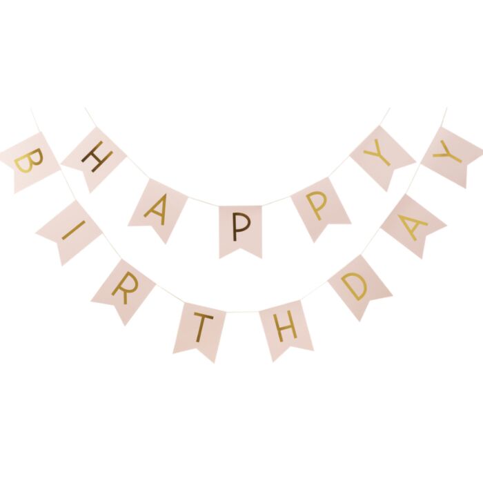 This cute pink gold foiled happy birthday bunting is the perfect finishing touch to your party.