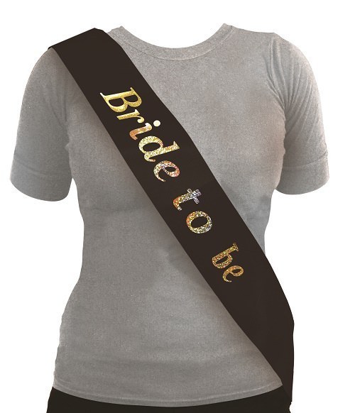 Black Bride To Be Sash with sparkling silver foil "Bride To Be" print.