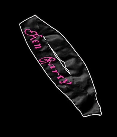 Black Hen Party sash with Flashing LEDS with pink writing.