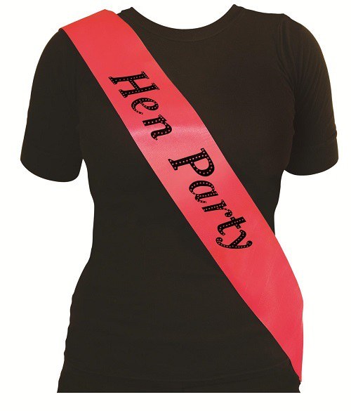 Pink Hen Party Sash with black print.