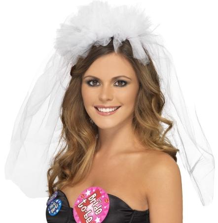 White Hen Night Veil on white headband.