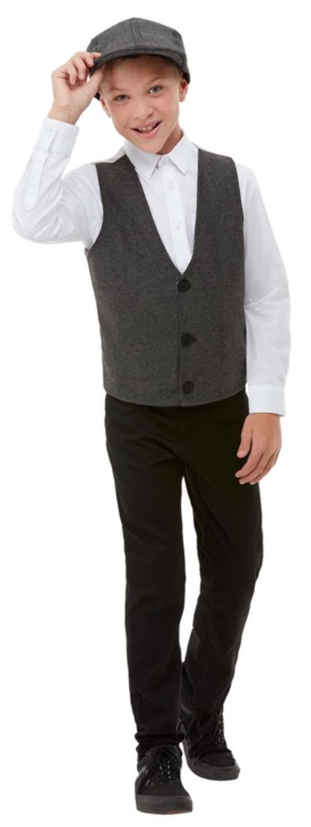20's Gangster Boy Kit includes a grey waistcoat and a grey flat cap.