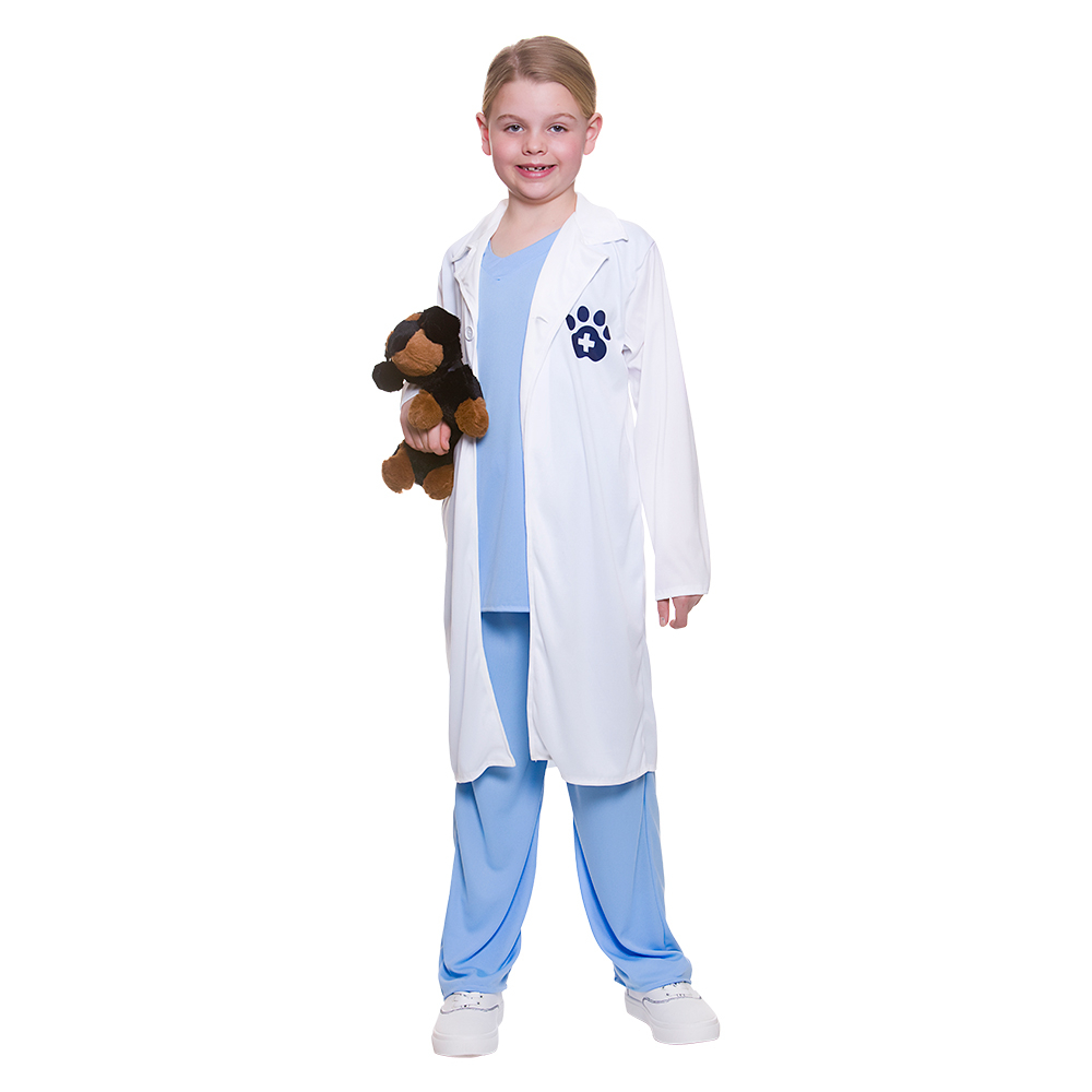 Our kids Animal Loving Vet Costume includes a coat with an attached top, trousers and a mask.