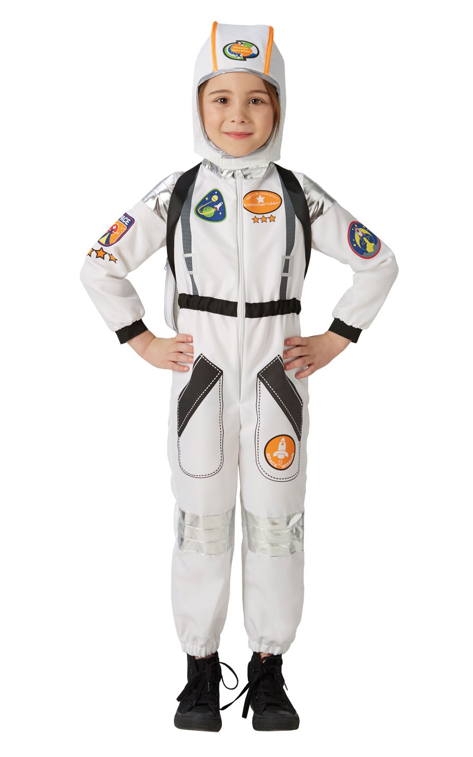 This Kids Astronaut costume includes a white top with strap and badge detail and a pair of matching trousers. To complete the look a helmet is also included.