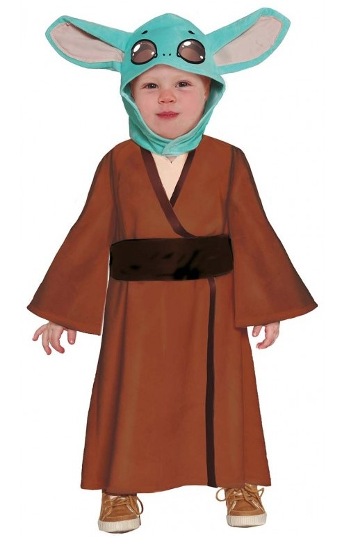 This Baby Alien Costume is perfect for your little one to step into the role of an alien! The costume is 100% polyester and features a blue character hood with ears attached, a long brown tunic and black belt across the waist.