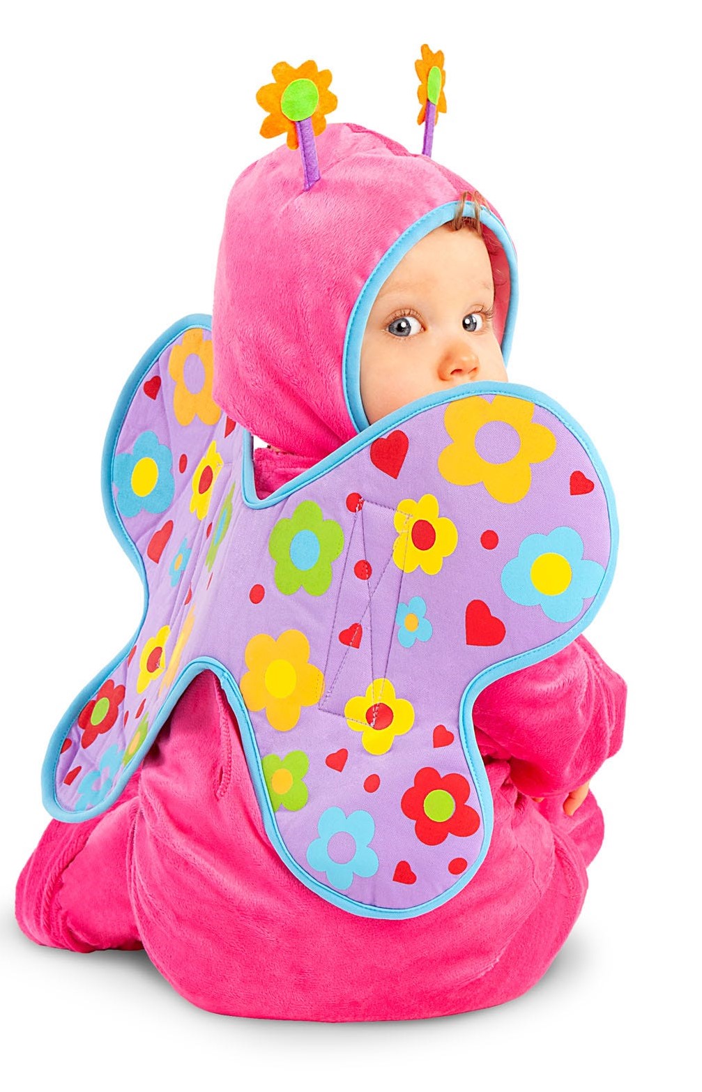 This adorable Baby Butterfly Costume includes a jumpsuit with a hood.