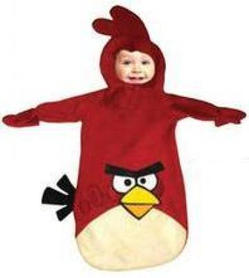 This cute Red Angry Birds yellow costume from the popular phone app features a red bunting costume with long sleeves, tail and attached matching red hood.
