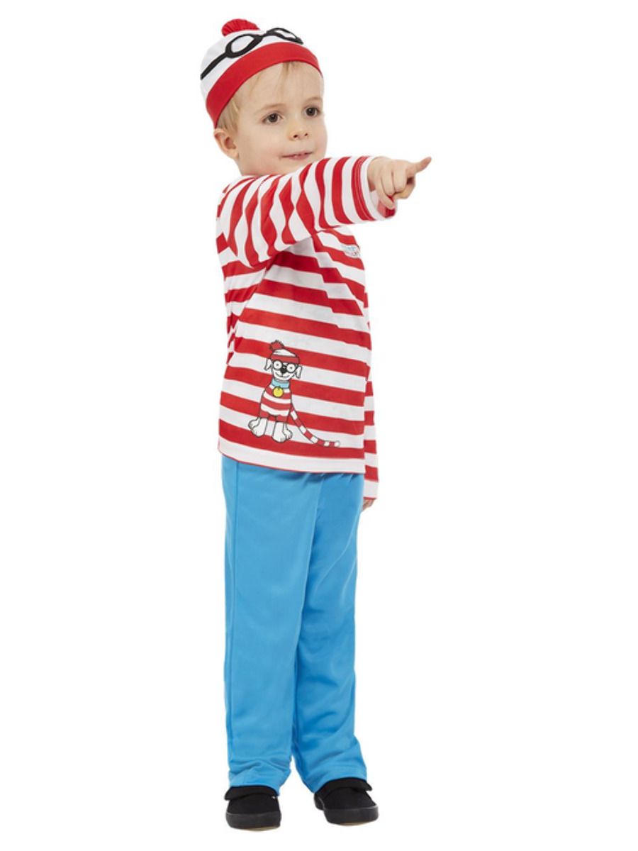 Where's Wally? toddler Costume includes Red and White top, with blue trousers and a Hat with a glasses motif.