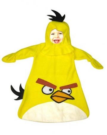 This cute Red Angry Birds yellow costume from the popular phone app features a red bunting costume with long sleeves, tail and attached matching red hood.