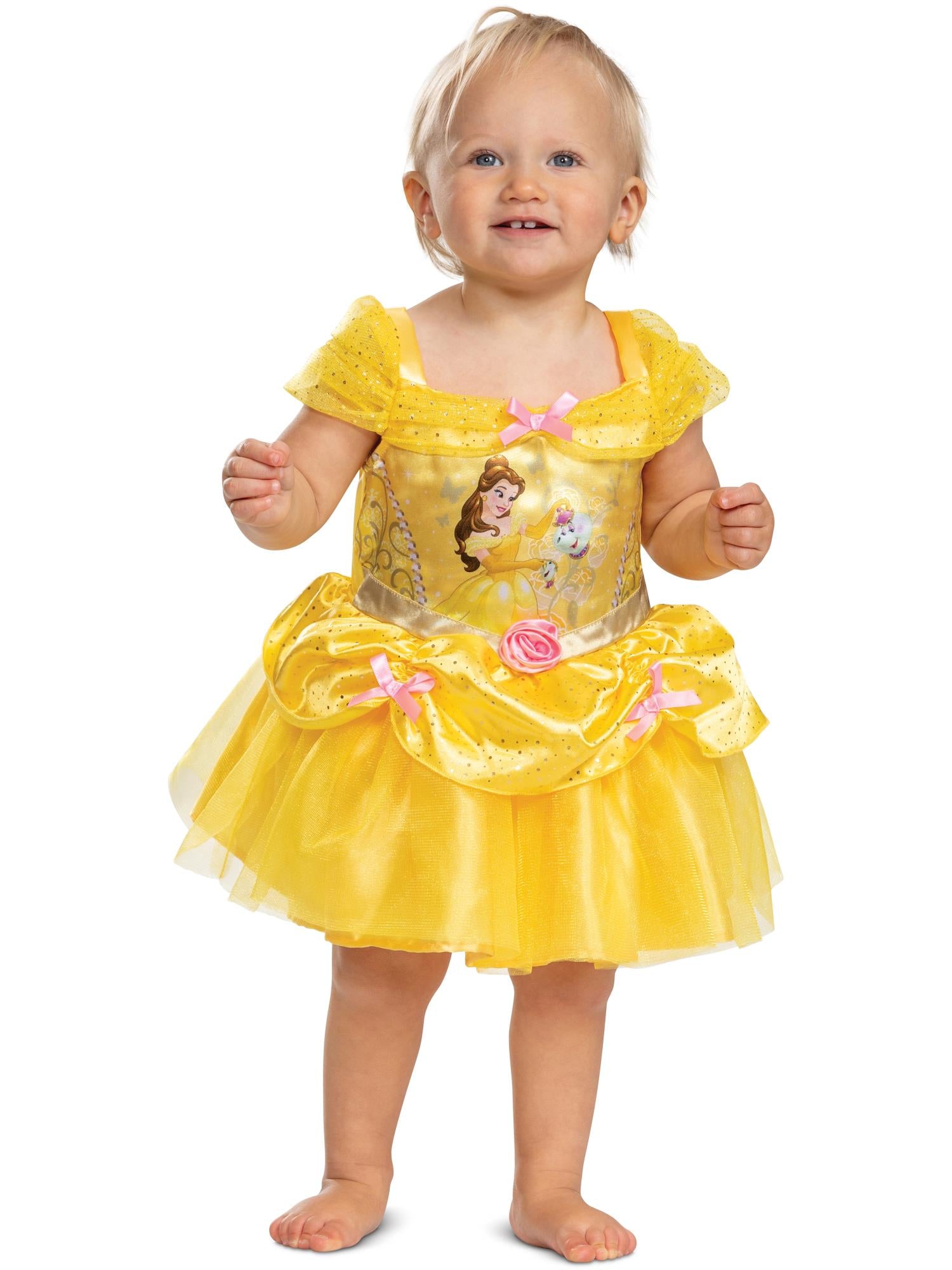 Designed for toddlers, it features Belle’s signature yellow dress with charming details—perfect for dress-up play, parties, or magical adventures.