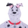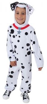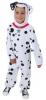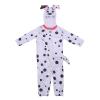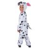 This Kids Black and White Spotted Dog costume has an attached hood and tail.