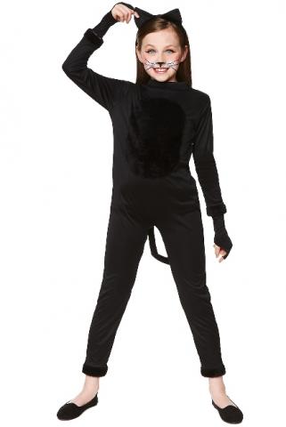 This Kids Black Cat Costume is the "Purrrfect" costume for your little girls next fancy dress event. This cute costume includes a all black catsuit with an attached tail to match. To complete the look a headband with cat ears is also included.