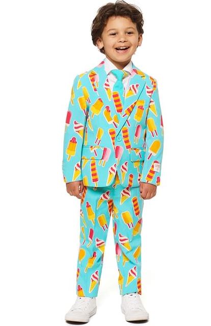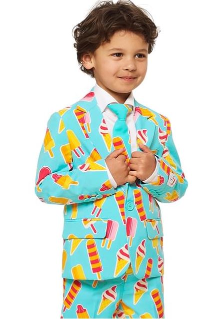 Our Ice Cream OppoSuit includes a printed suit jacket and a pair of matching trousers.