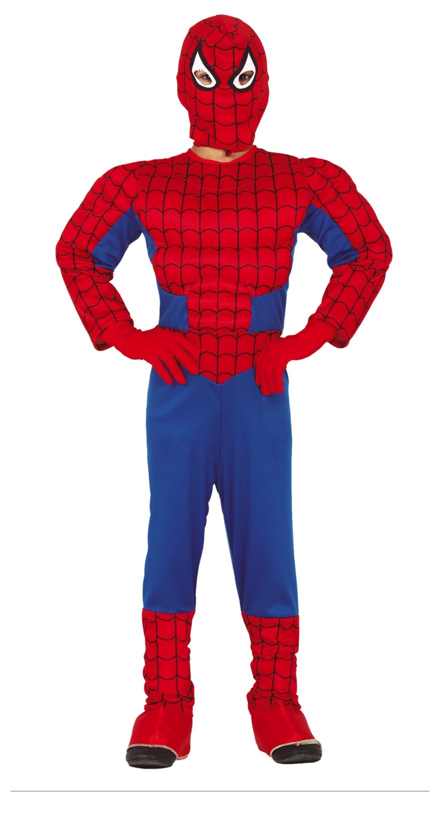 The Muscular Superhero costume includes a jumpsuit and a mask that will make them look like they are part of the action.