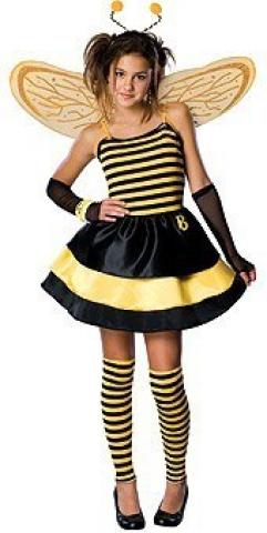 This Bratz Bumble Bee costume is inspired by the popular line of Bratz Dolls. This sweet costume includes a yellow and black bee style dress with black glovelets. Also included in this buzzing costume is a pair of bee wings and bee antenna on a hairband.