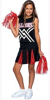 This Bratz Cheerleader Costume includes a black sleeveless top with matching red and black pleated skirt.