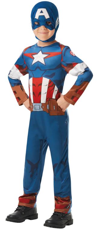 Your little hero can join the Avengers in style with this Captain America Costume, featuring a detailed jumpsuit and matching fabric mask.
